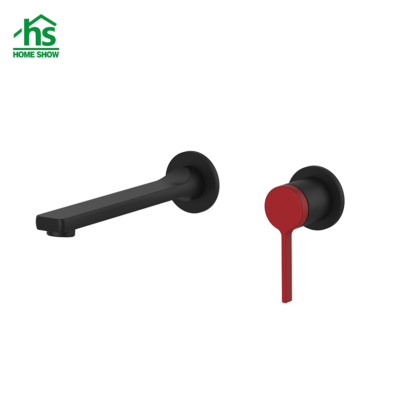 Wholesale Economic In Wall Brass Matt Black Single Level High Basin Mixer Tap With Red Handle